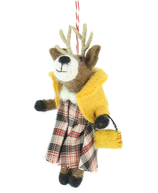 Felt Reindeer In Kilt- Black Watch or Royal Stuar