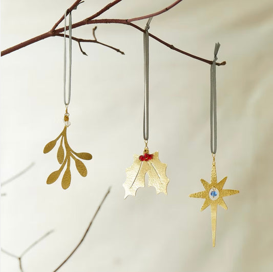 Christmas Holly Gold Metal Decoration