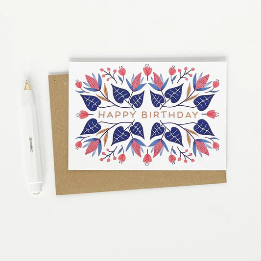 Happy birthday Cake with Red Leaf Design Birthday Card