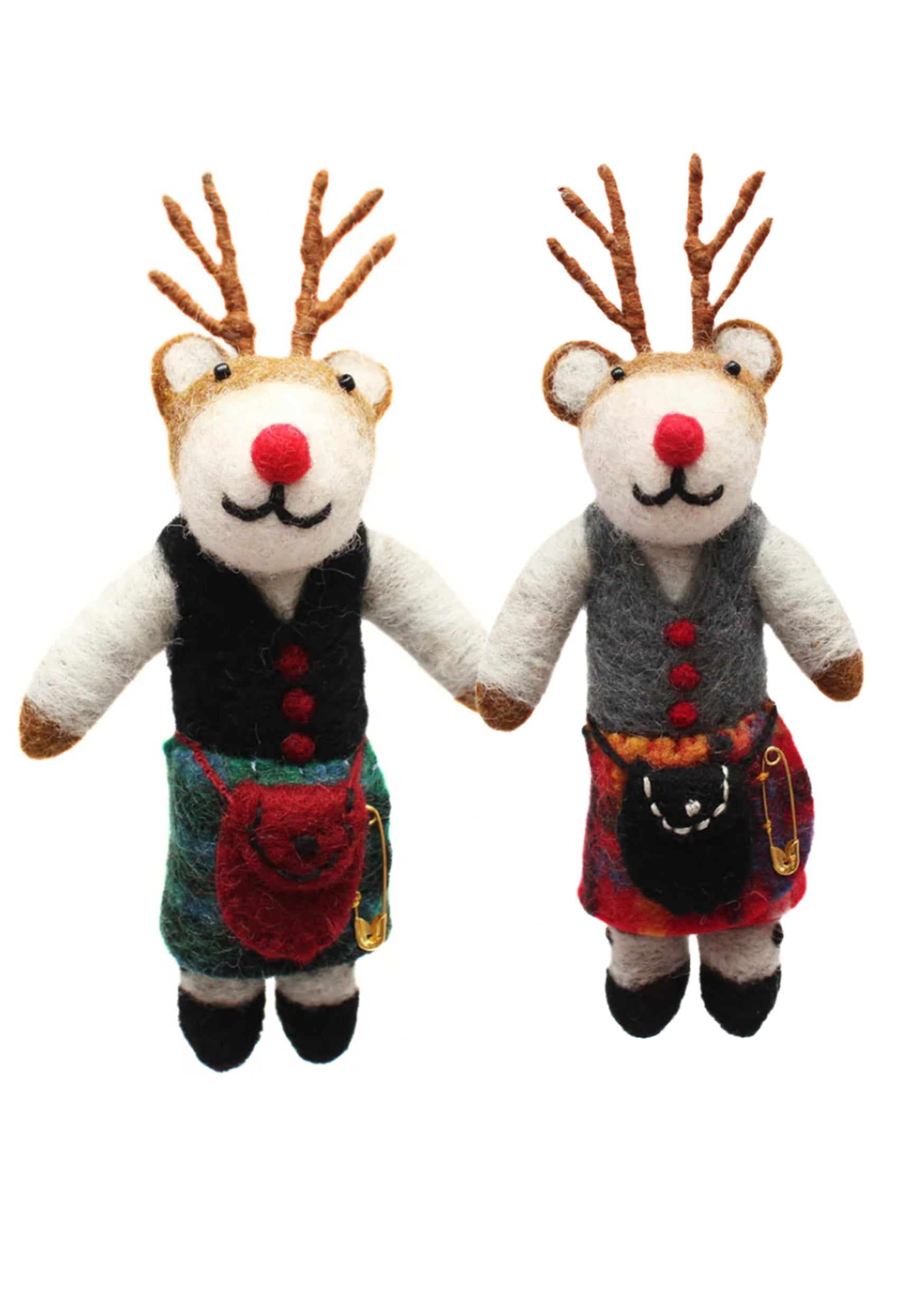 Felt Reindeer In Kilt- Black Watch or Royal Stuar