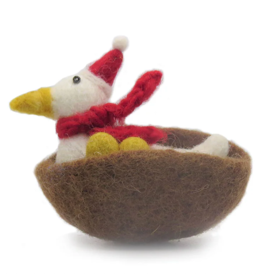 Handmade from 100% wool felt, plastic free, Fair Trade from Nepal. Comes with a hanging loop.