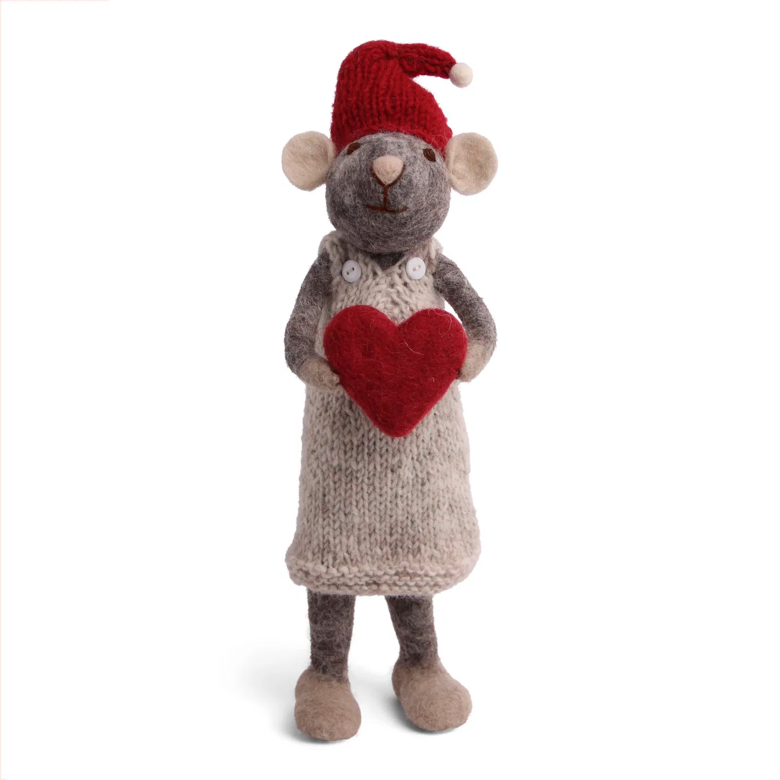 This big grey girly mouse carefully carries a felted heart, ready to share festive love. A beautiful, handcrafted addition to the Christmas Mice Family.