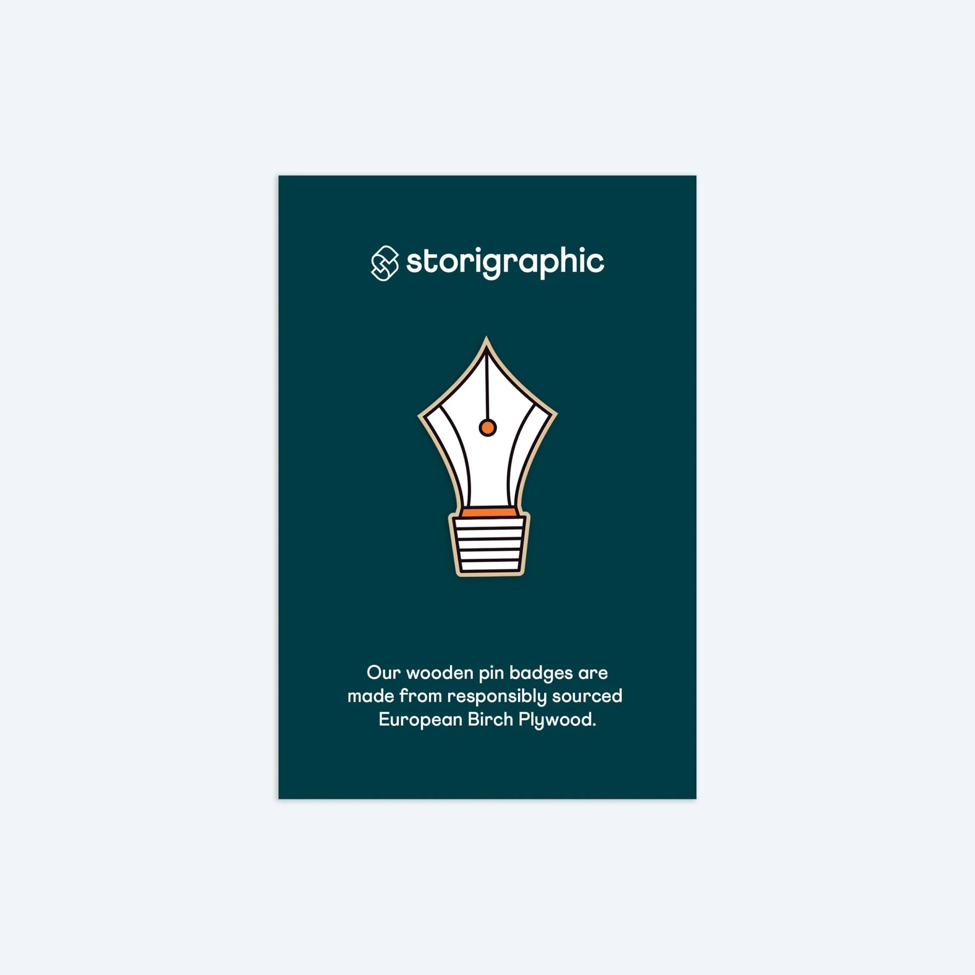 This exclusively illustrated pen nib pin badge is made from responsibly sourced European wood.